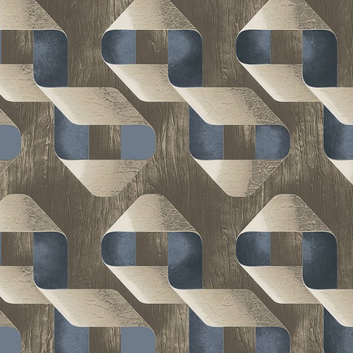 Papel de parede com estampa 3D nas cores azul e cinza