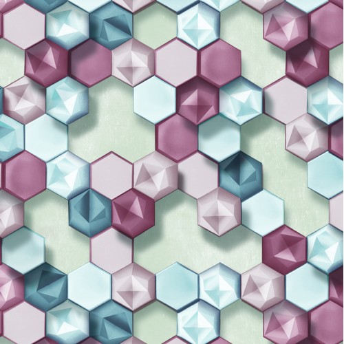 Papel de parede, 3D geométrico, hexágono, roxo e azul