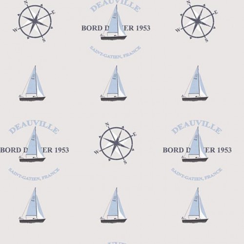Papel de Parede - Deauville 2Papel de Parede Deauville 2 G23031Papel de parede, barquinho e rosa dos ventos azuis com fundo cinza..