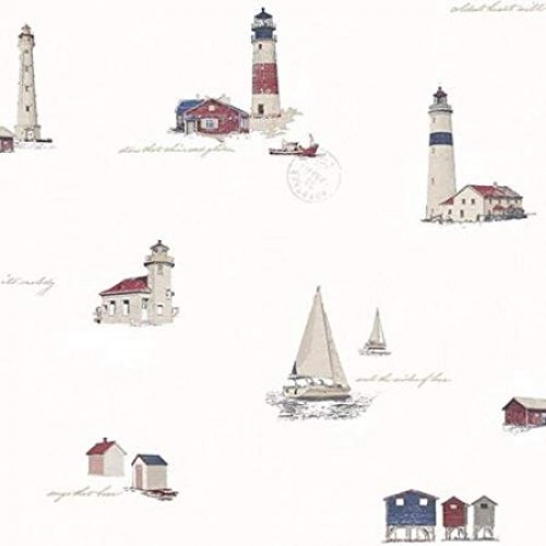 Papel de Parede - Deauville 2Papel de Parede Deauville 2 G23315Papel de parede, barquinhos, casinhas e farol com fundo branco..