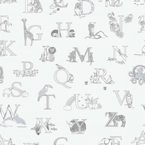 Papel de Parede - Just 4 Kids 2Papel de Parede Just 4 Kids 2-G56536Papel de parede, infantil, letras com animais, cinza..