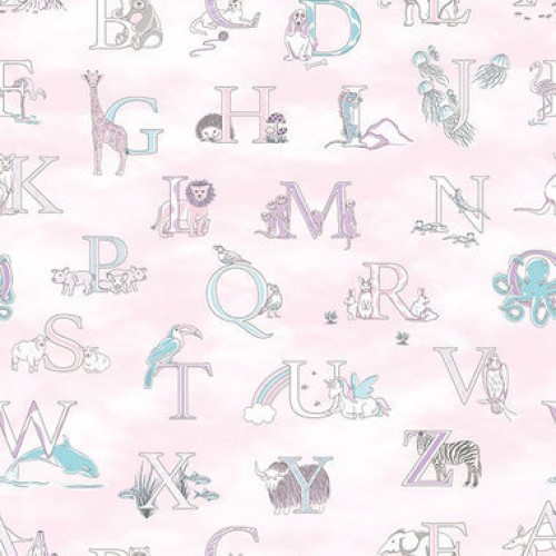 Papel de Parede - Just 4 Kids 2Papel de Parede Just 4 Kids 2-G56538Papel de parede, infantil, letras coloridas com animais, fundo de nuvens, rosa..