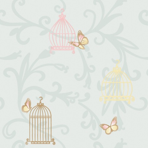 Papel de Parede - InfantárioPapel de Parede Infantario 1706Papel de parede, infantil, arabescos com borboletas, fundo azul..