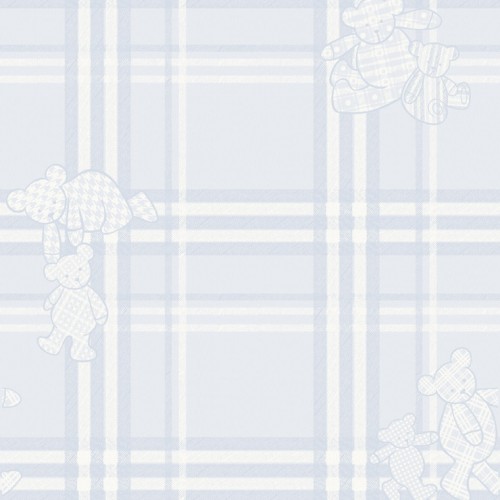 Papel de Parede - InfantárioPapel de Parede Infantario 1710Papel de parede, infantil, xadrez com ursinhos, azul..