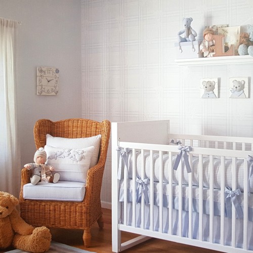 Peso Caixa: 1300 Origem: Importado Área de Cobertura m2: 4,5m² Tonalidade / Cor: Azul Estampa: Xadrez com ursinho Descrição: Papel de parede, infantil, xadrez com ursinhos, azul