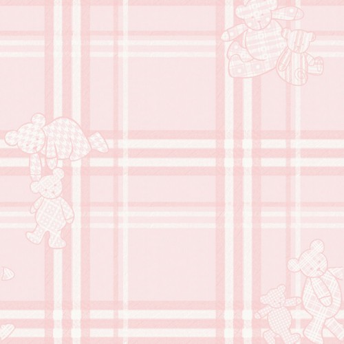 Papel de Parede - Infantário Papel de Parede Infantario 1711 Papel de parede, infantil, xadrez com ursinhos, rosa.. Product #: Papel-de-Parede-Infantario-1711
