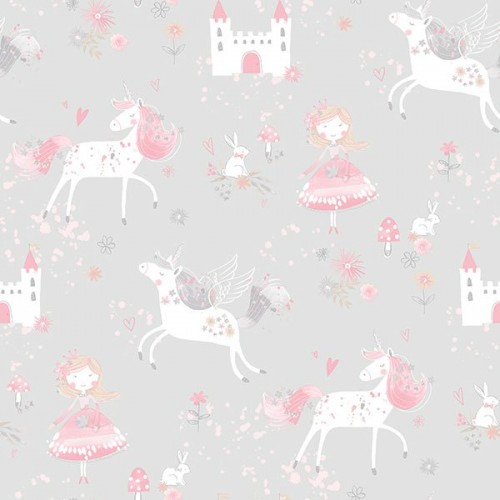 Papel de Parede - Just 4 Kids 2Papel de Parede Just 4 Kids 2-G56525Papel de parede, infantil, princesas e unicórnios, fundo cinza..
