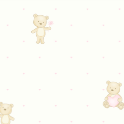Peso Caixa: 1300 Origem: Importado Área de Cobertura m2: 5,0m² Tonalidade / Cor: bege e rosa Estampa: ursinhos e corações Descrição: Papel de parede com estampa de ursinhos e corações nas cores bege e rosa